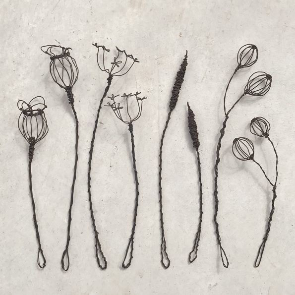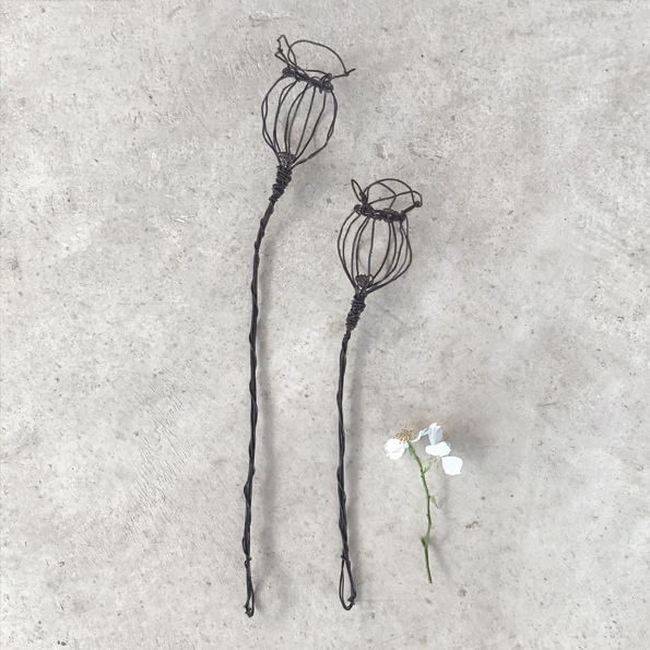 7263 -Rusty wire sprig-Sml Poppy head